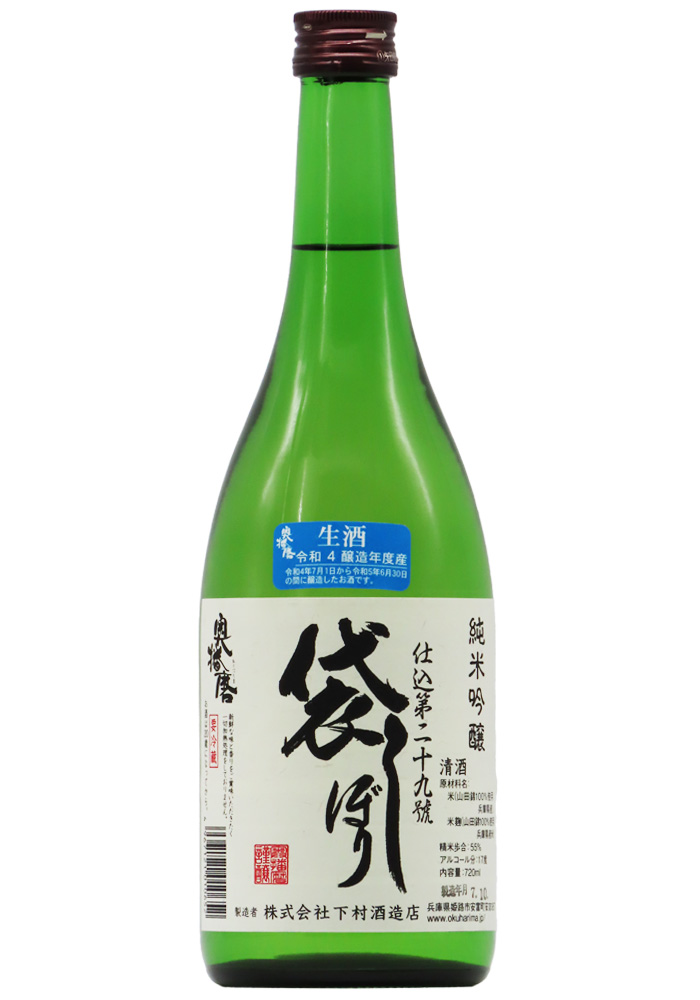 奥播磨(兵庫県/下村酒造店) 奥播磨 純米吟醸 袋しぼり 仕込第二十九號 生酒 (R4BY) 720ml 明治17年の創業より「手造りに秀でる技はなし」の家訓を守り、現在は米と米麹を原料にした純米酒のみを醸造しています。奥播磨は、存在感があり、飲んでうまい!と思っていただけるお酒造りを目指しています。また、地元の酒米を用いた酒造りにこだわっており、お燗でもうまい食中酒です。食事をしながらついつい杯が進みます。 もうひとつ、酒造りに大切な事は和です。いくら良い原料を使い、良い技術者を集めても和が乱れてしまえば良い酒は出来ません。奥播磨では蔵人の想いを一つにし、丁寧で調和のとれた酒造りに挑んでいます。 奥播磨の商品一覧はこちらから 販売価格 1,980円(税込み) 会員価格 (税込み) 通常価格 (税込み) 在庫 商品コード 26697 JANコード 数量 1 2 3 4 5 6 7 8 9 10 カートに入れる カテゴリー 奥播磨(兵庫県/下村酒造店) ブランド 奥播磨 純米吟醸 袋しぼり 仕込第二十九號 生酒 (R4BY) 720ml 注文年齢制限 20歳 ~ 注文手続き画面にて、生年月日を入力いただきます。 原料米 兵庫県産 山田錦精米歩合 55%アルコール度数 17.5度日本酒度 +2酸度 2.1アミノ酸度 1.8酵母 9号酵母製造元 兵庫県/下村酒造店配送便 クール便/要冷蔵→ラッピングに進む ツイートする シェアする RECOMMENDEDおすすめ商品 一博 純米吟醸 生酒 10年熟成 平成27年醸造年度 (27BY) 1,800ml 4,180円(税込み) 一博 純米吟醸 生酒 10年熟成 平成27年醸造年度 (27BY) 720ml 2,090円(税込み) 奥播磨 純米吟醸 袋しぼり 仕込第二十九號 生酒 (R4BY) 1,800ml 3,850円(税込み) 笑四季 Sensation 黒ラベル 生 おり酒 Extreme (R6BY) 1,800ml ※業務用・開栓注意※ 2,640円(税込み) 巻機(まきはた) 艶bambino 扁平精米×マイクロバブル洗米 無濾過生酒 (R7BY) 1,800ml 3,025円(税込み) 巻機(まきはた) 艶bambino 扁平精米×マイクロバブル洗米 無濾過生酒 (R7BY) 720ml 1,815円(税込み) 仙禽 モダン 零式 無濾過生原酒 (R7BY) 720ml 1,900円(税込み) 大嶺3粒 無濾過生原酒 山田錦 (R7BY) 720ml 2,750円(税込み) 大嶺3粒 無濾過生原酒 山田錦 (R7BY) 1,800ml 3,960円(税込み) 雨降(あふり) 桃色純米 かすみさけ (KASUMI) (R7BY) 1,800ml 3,800円(税込み) 雨降(あふり) 桃色純米 かすみさけ (KASUMI) (R7BY) 720ml 2,250円(税込み) 風の森 ALPHA1 ドライ ~次章への鍵~ 無濾過無加水生酒 2025 (R7BY) 720ml【お一人様2本まで】 1,650円(税込み) 笑四季 Sensation 青ラベル 生 おり酒 Extreme (R6BY) 1,800ml ※業務用・開栓注意※ 2,750円(税込み) 笑四季 Sensation 白ラベル 生 おり酒 Extreme (R6BY) 1,800ml ※業務用・開栓注意※ 2,640円(税込み) 澤屋まつもと 守破離 五百万石 一回火入れ 1,800ml 3,080円(税込み) 奥播磨 純米吟醸 深山霽月(みやませいげつ) 生酒 (R4BY) 1,800ml 3,520円(税込み) 寒北斗 試験醸造 低精白 80% (R6BY) 1,800ml 2,701円(税込み) 寒北斗 試験醸造 低精白 80% (R6BY) 720ml 1,350円(税込み) 天穏 齋香荒② (サケル②) 生もと純米大吟醸 佐香錦 (火入) (R5BY) 720ml 1,650円(税込み) 花邑 純米吟醸 雄町 瓶火入一回 (R6BY) 720ml【お一人様1本限定】 2,156円(税込み) 【京都限定販売】蒼空 特別純米生原酒 短稈渡船(たんかんわたりぶね) (R6BY) 1,800ml※開栓注意※ 4,510円(税込み) 風の森 秋津穂 507 無濾過無加水生酒 720ml【お一人様2本まで】 1,870円(税込み) 笑四季 貴醸酒 モンスーン 山田錦 生 おり酒(R6BY) 1,800ml ※業務用・開栓注意※ 3,740円(税込み) 笑四季 貴醸酒 特別篇 コールドフロント 生 おり酒 2024ー2025 (R6BY)【カメ】 1,800ml ※業務用・開栓注意※ 3,740円(税込み) 笑四季 貴醸酒 モンスーン 玉栄 低温熟成・ 火入 (2023-2024) (R5BY) 720ml 2,750円(税込み) 松の司 純米大吟醸 黒 (R5BY) 720ml 5,500円(税込み) 不老泉 山廃仕込 純米吟醸 うすにごり 生原酒 (R6BY) 1,800ml 3,641円(税込み) 大嶺3粒 火入れ 山田錦 720ml【お一人様6本まで】 2,475円(税込み) 花邑 純米酒 陸羽田 瓶火入一回 (R6BY) 720ml【お一人様1本限定】 1,980円(税込み) 裏 翠玉(うら すいぎょく) 特別純米酒 (R6BY) 1,800ml 3,938円(税込み) 最新の入荷情報はメール配信、SNSでお知らせしております。 ■お支払い方法 ・クレジットカード決済 ・代金引換 (手数料330円(税込)) ・代金後払い(手数料330円(税込)) ・店頭払い・店頭受け取り ■送料 全国一律1,200円(税込) 北海道と沖縄は2,000円(税込) ※ご注文手続き完了時に計上される配送料はシステム都合で1個口分のみとなります。出荷が2個口以上になる場合、配送料を変更して出荷前にお知らせいたします。 ※1,800mlの商品と720ml(750ml)の商品を混載して1個口で出荷できます。 ※(例)720ml(750ml)は1個口12本まで 720ml×12本=1個口 720ml×24本=2個口 ※(例)1,800mlは1個口6本まで 1,800ml×6本=1個口 1,800ml×1本 + 720ml×5本=1個口 1,800ml×1本 + 720ml×6本=2個口 ※最大何本を1個口で出荷できるかは組み合わせによって異なります。 ※箱入り・規格外サイズの場合は個別に別途ご連絡いたします。 ※日本酒をご注文の場合は、火入れの日本酒も含め、基本的にクール便(全国一律440円(税込))にてお手配させていただきます。 ※クール便代は、個口単位で料金が発生します。 ■商品の在庫確保につ